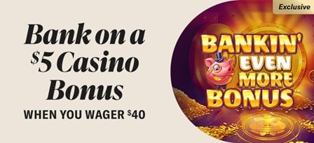 Your bankroll just got a boost! Wager $40 or more on our exclusive slot, Bankin’ Even More Bonus™, and earn a $5 Casino Bonus to keep the fun going.
